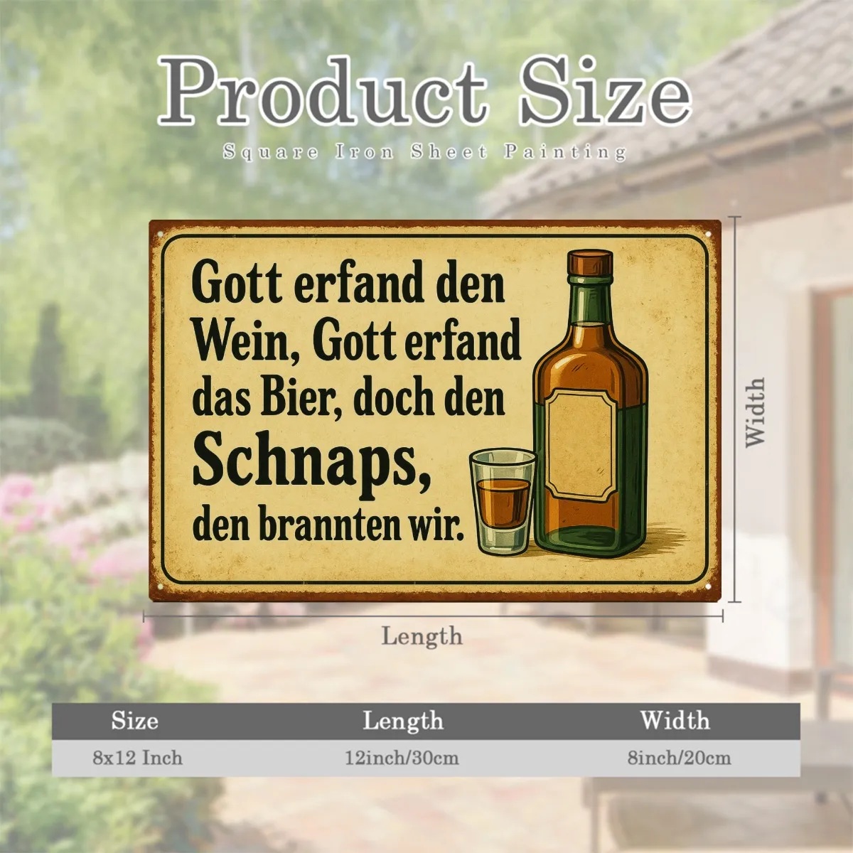 Heilige Sprüche & hochprozentiger Humor! Dieses urkomische Blechschild bringt göttlichen Wortwitz und irdisches Trinkvergnügen stilvoll zusammen. Der Spruch „Gott erfand den Wein, Gott erfand das Bier, doch den Schnaps, den brannten wir“ ist nicht nur ein Lacher, sondern eine echte Lebensphilosophie – ideal für alle Spirituosenfreunde mit Humor.