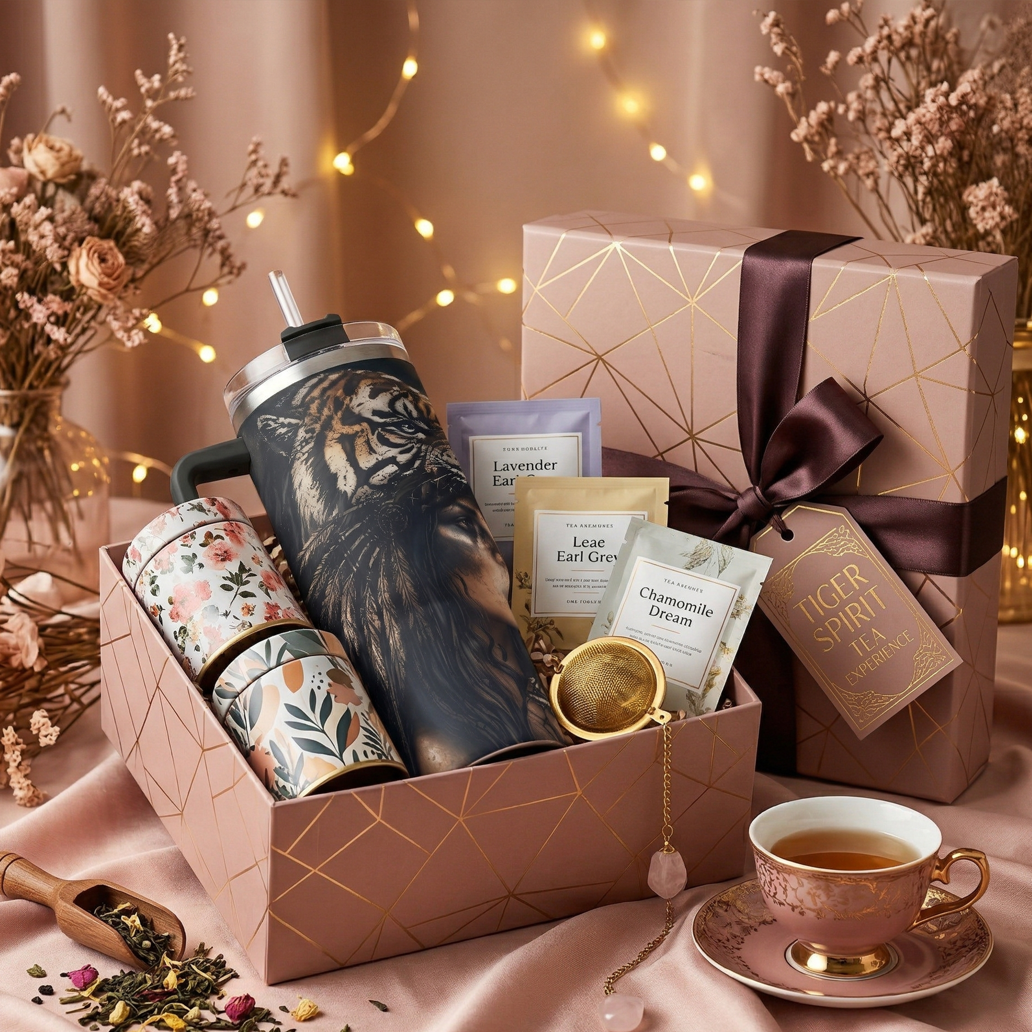 Die dargestellte Szene dient ausschlieĂlich als Inspiration fĂŒr eine Geschenkidee. Dekorationen, Accessoires, Tee, Schale oder Geschenkbox sind nicht im Lieferumfang enthalten. Verkauft wird ausschlieĂlich der Thermobecher.