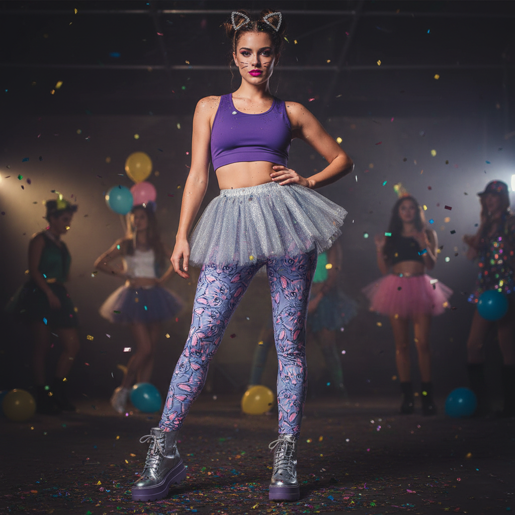 Diese High Waist Katzen-Leggings ist wie gemacht fĂŒr Fasching, Motto-Partys, Karneval, Festivals â oder fĂŒr Tage, an denen du einfach zeigen willst, dass du Geschmack, Humor und keinerlei Angst vor Aufmerksamkeit hast.
