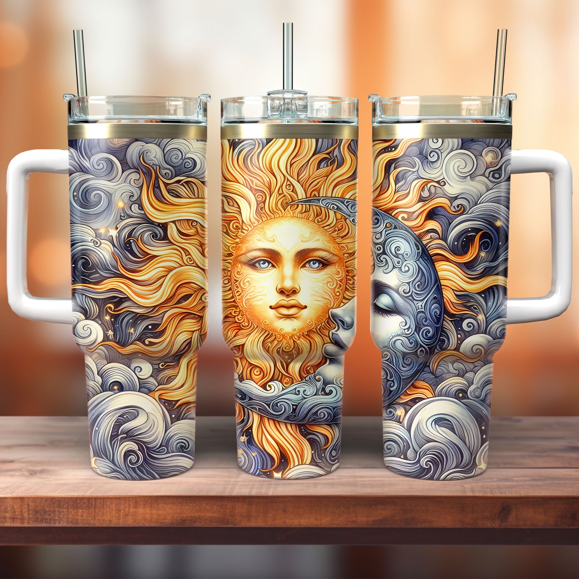 Tumbler mit Griff - ToGo - Boho-Stil Sonne und Mond