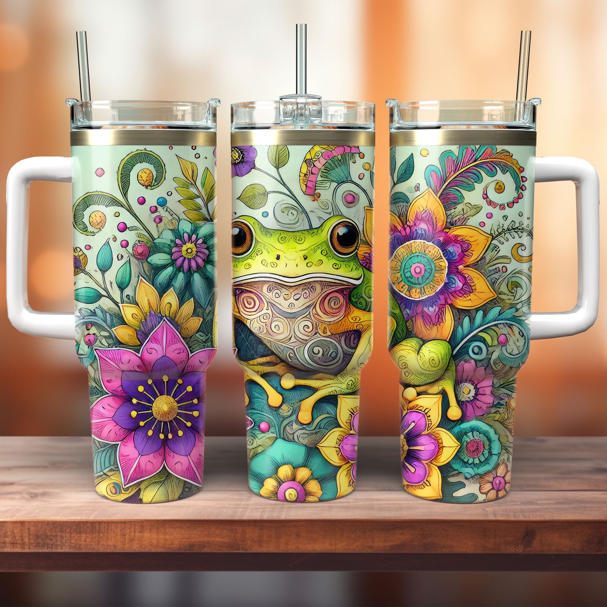 Tumbler mit Griff - ToGo - Floral Fantasy Frosch
