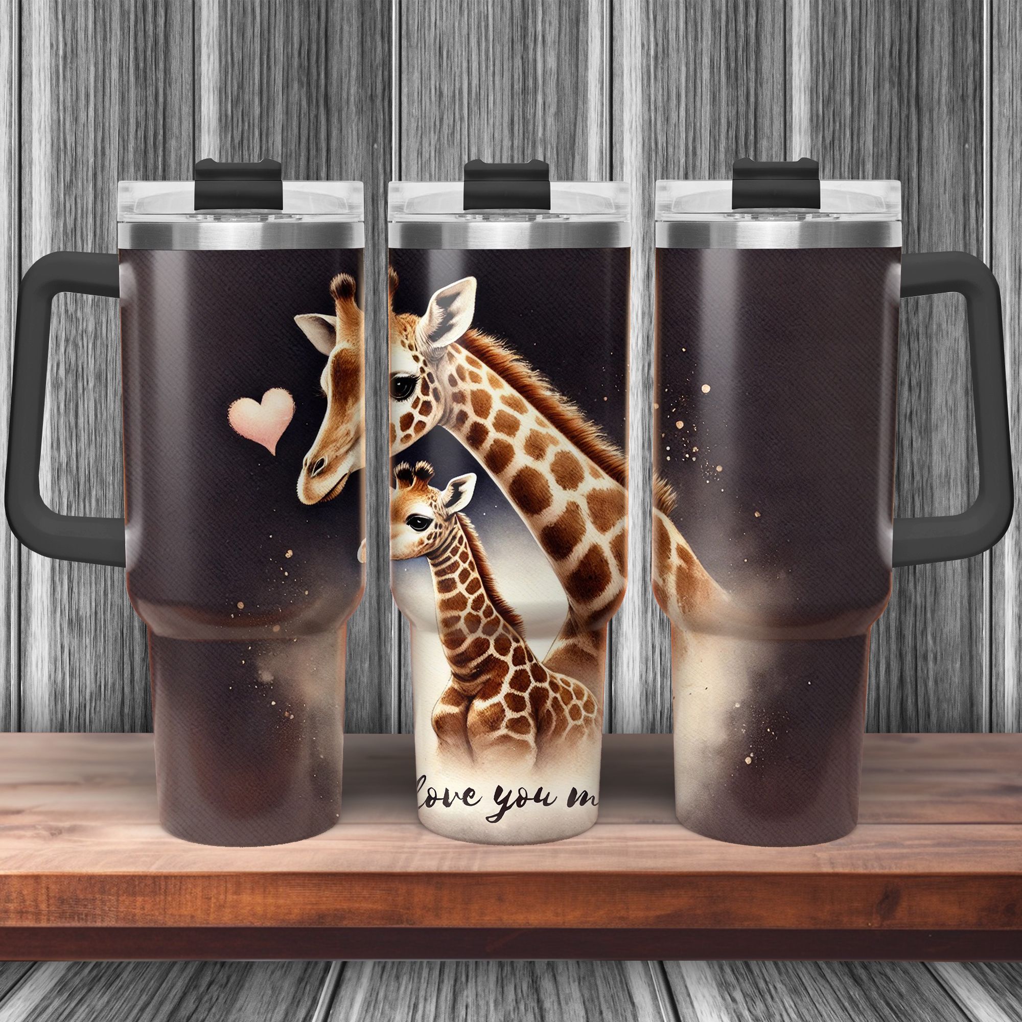 Tumbler mit Griff - ToGo - "I Love You Mom" Giraffen Mama mit Kind