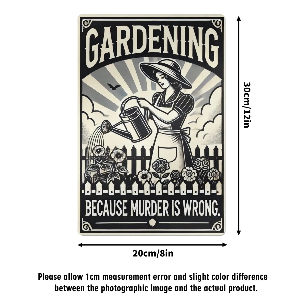 Breng humor in je tuin met dit grappige metalen bord "Gardening Because Murder Is Wrong"! Perfect voor alle hobbytuinders met een donker gevoel voor humor die hun passie voor planten op een originele manier willen uiten. Of het nu in het tuinhuisje, aan de schutting of op het terras staat: dit bord zorgt gegarandeerd voor een glimlach bij uw gasten!