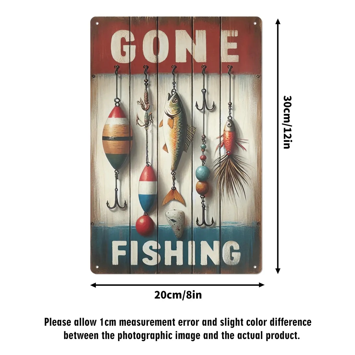 Toon je passie voor vissen met dit nostalgische metalen bord! Als humoristische deurdecoratie, voor uw vissershut of als cadeau voor een enthousiaste visser - het bord "Gone Fishing" brengt een echt buitengevoel in uw huis.