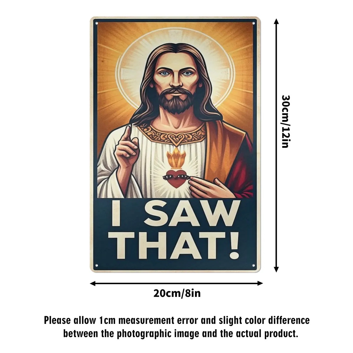 Haal humor en een goddelijke boodschap in huis met deze leuke "I Saw That!" met Jezusmotief. Perfect voor iedereen die zijn geloof wil combineren met een vleugje ironie en gasten wil laten lachen met een knipoog. Of het nu in de woonkamer, op kantoor of in de kerk is: dit bord is gegarandeerd een gespreksonderwerp!