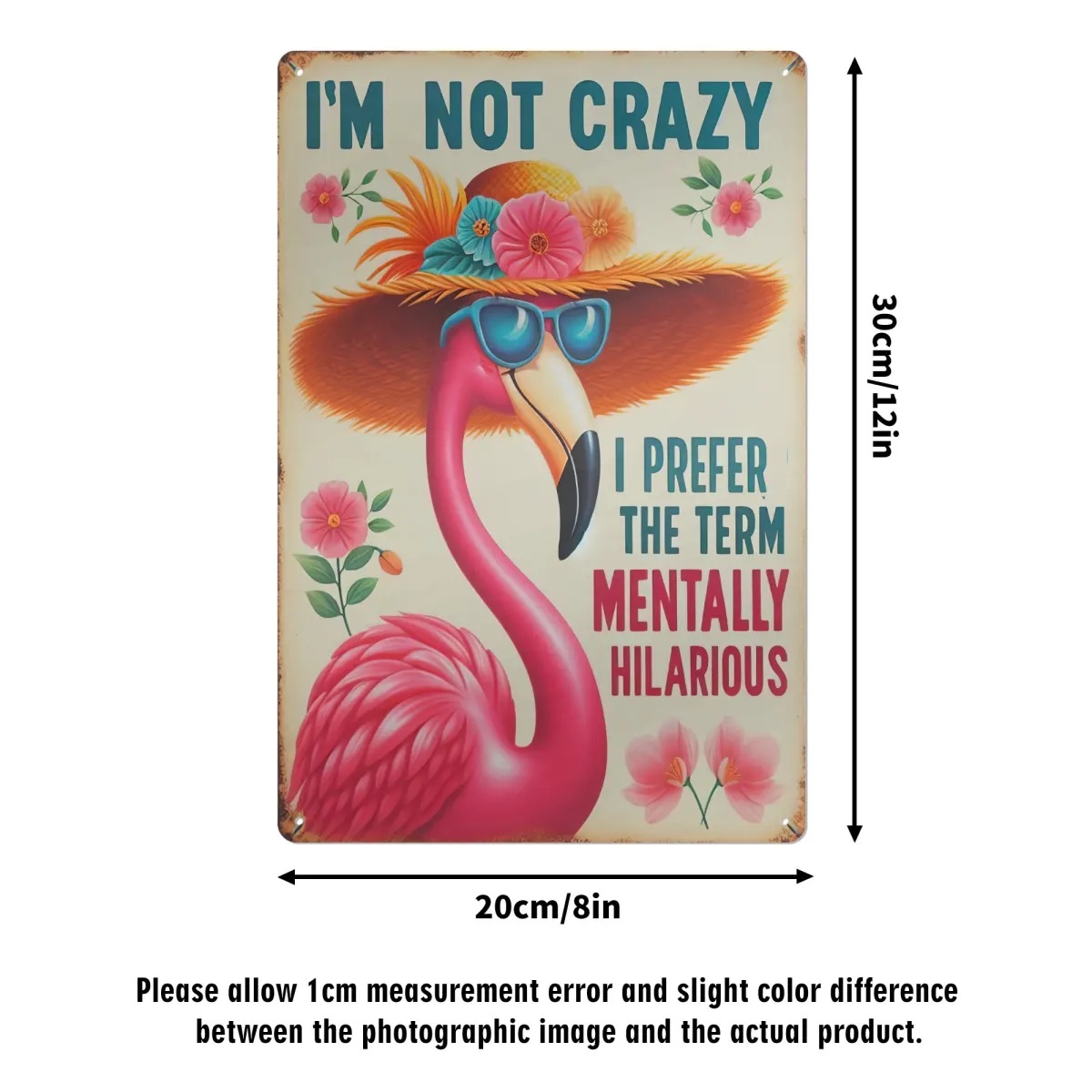Tinnen bord "Ik ben niet gek, ik geef de voorkeur aan de term mentaal hilarisch" - Grappige flamingodecoratie