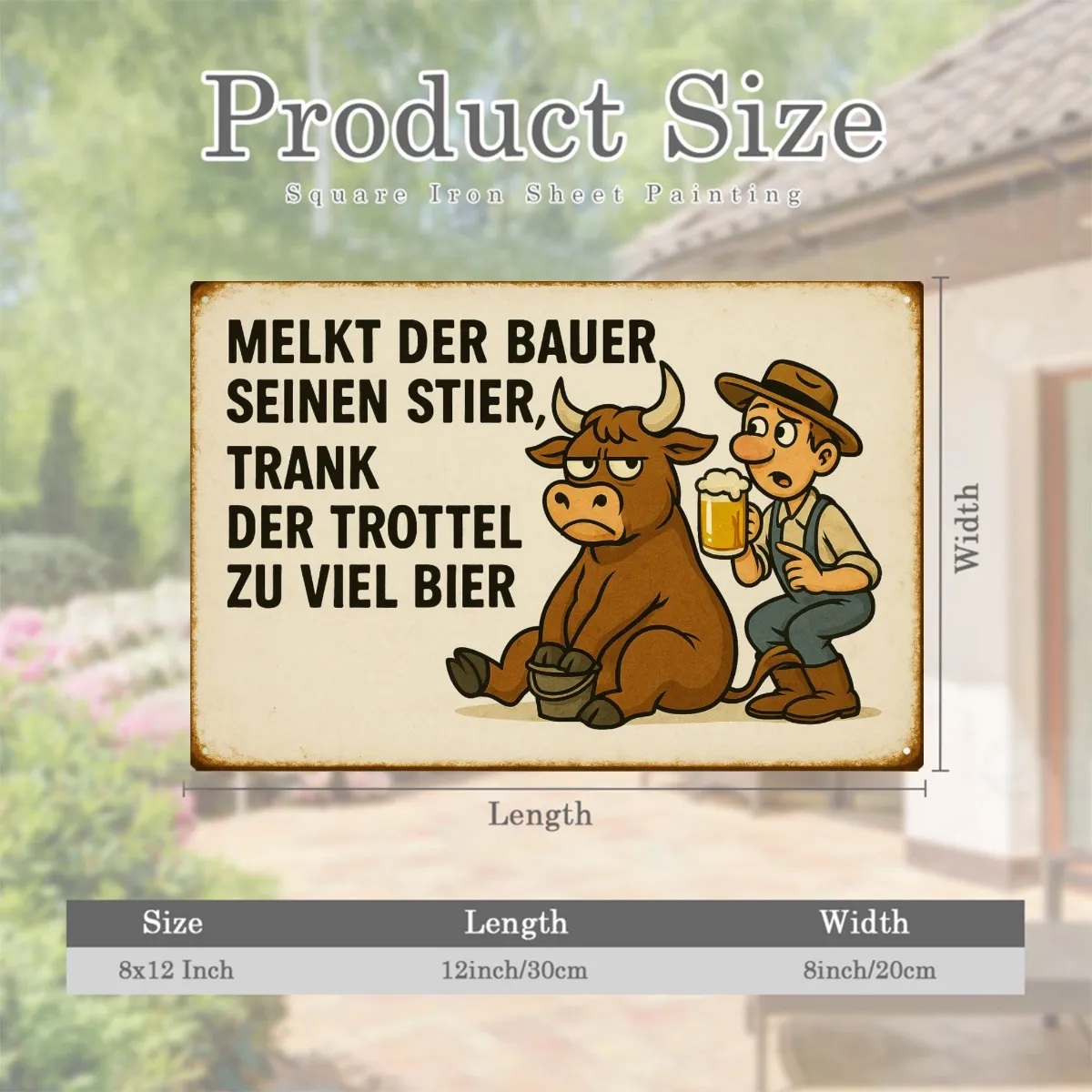 Grappig metalen bord "De boer melkt zijn stier" | Humoristische bierdecoratie in retrostijl