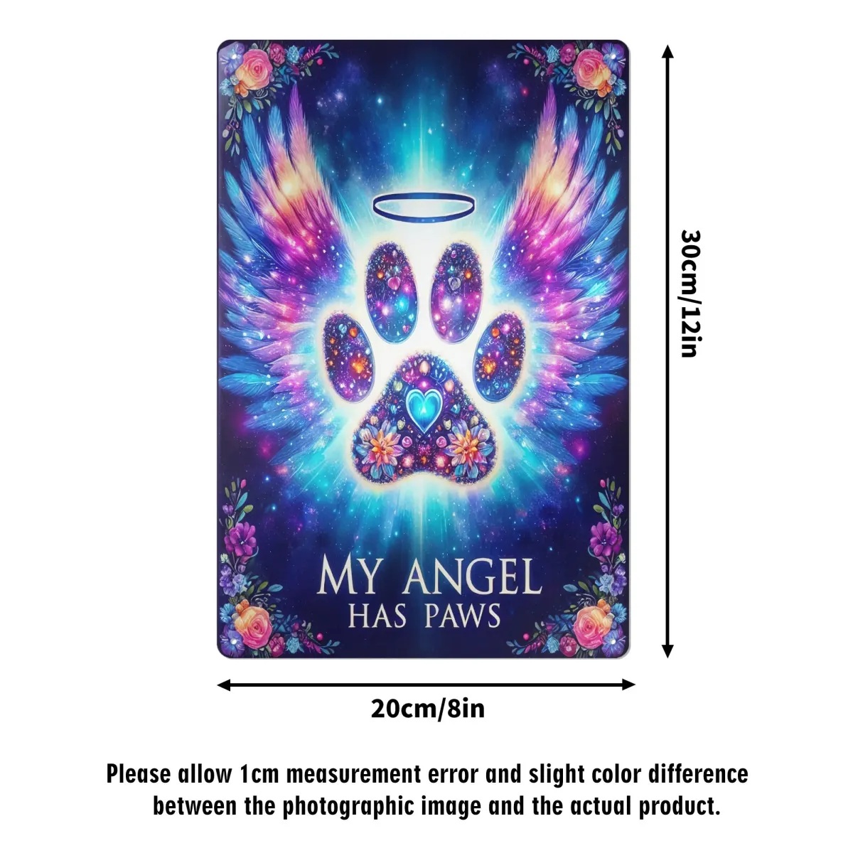 Toon uw diepe verbondenheid met uw geliefde viervoeter met dit emotionele vintage blikken bord! De zinsnede "My Angel Has Paws" gecombineerd met een oprecht hondenpoot-engelvleugelontwerp maakt dit bord tot een speciaal eerbetoon aan trouwe harige vrienden - perfect voor eigenaren van gezelschapsdieren die hun dierenvrienden willen eren.