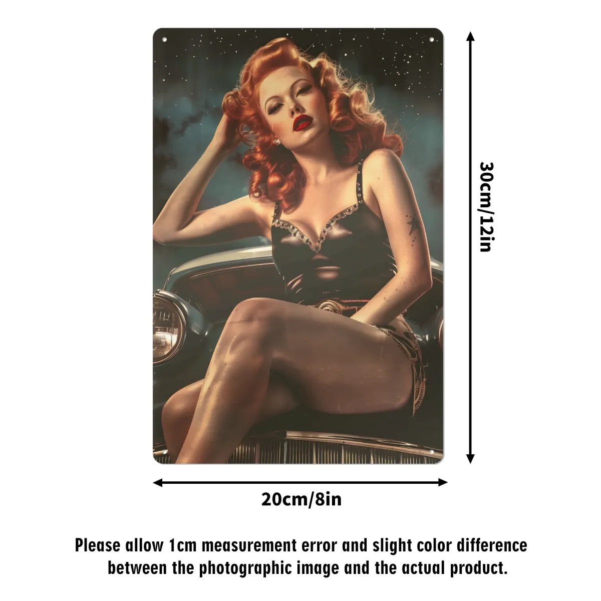 Breng de klassieke vintage charme van de jaren 50 in uw huis, garage of werkplaats met dit stijlvolle metalen bord "Retro Car"! De iconische pin-up girl gecombineerd met een chique vintage auto-design zorgt voor een stoere retro sfeer en is een echte eyecatcher voor iedereen die van nostalgie en auto’s houdt.