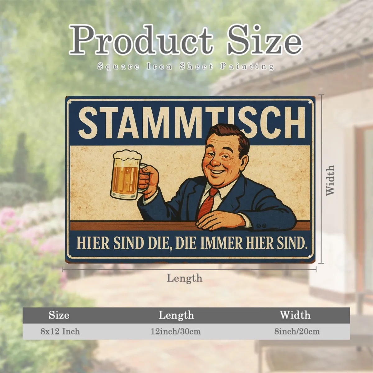Metalen bord “Stammtisch – Hier zijn zij die er altijd zijn” | Grappige decoratie voor bars, kelders en pubs