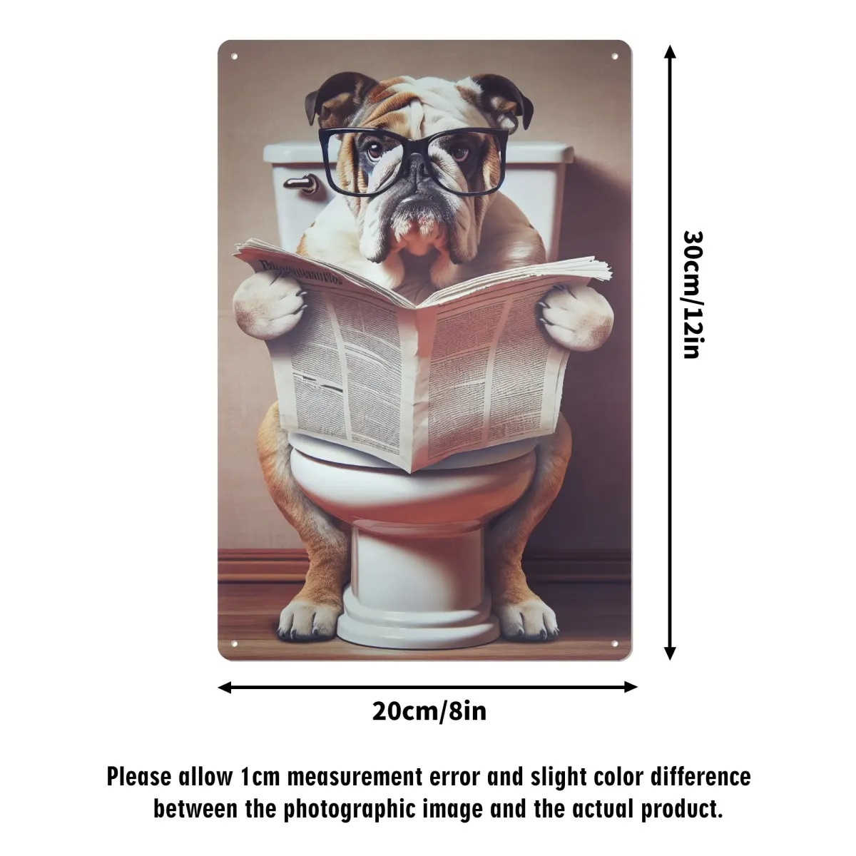 Heeft jouw badkamer een humor-upgrade nodig? Dan is dit grappige metalen bord met een Engelse bulldog die comfortabel op het toilet zit en de krant leest, iets voor jou! Perfect voor iedereen die zijn gasten wil laten lachen