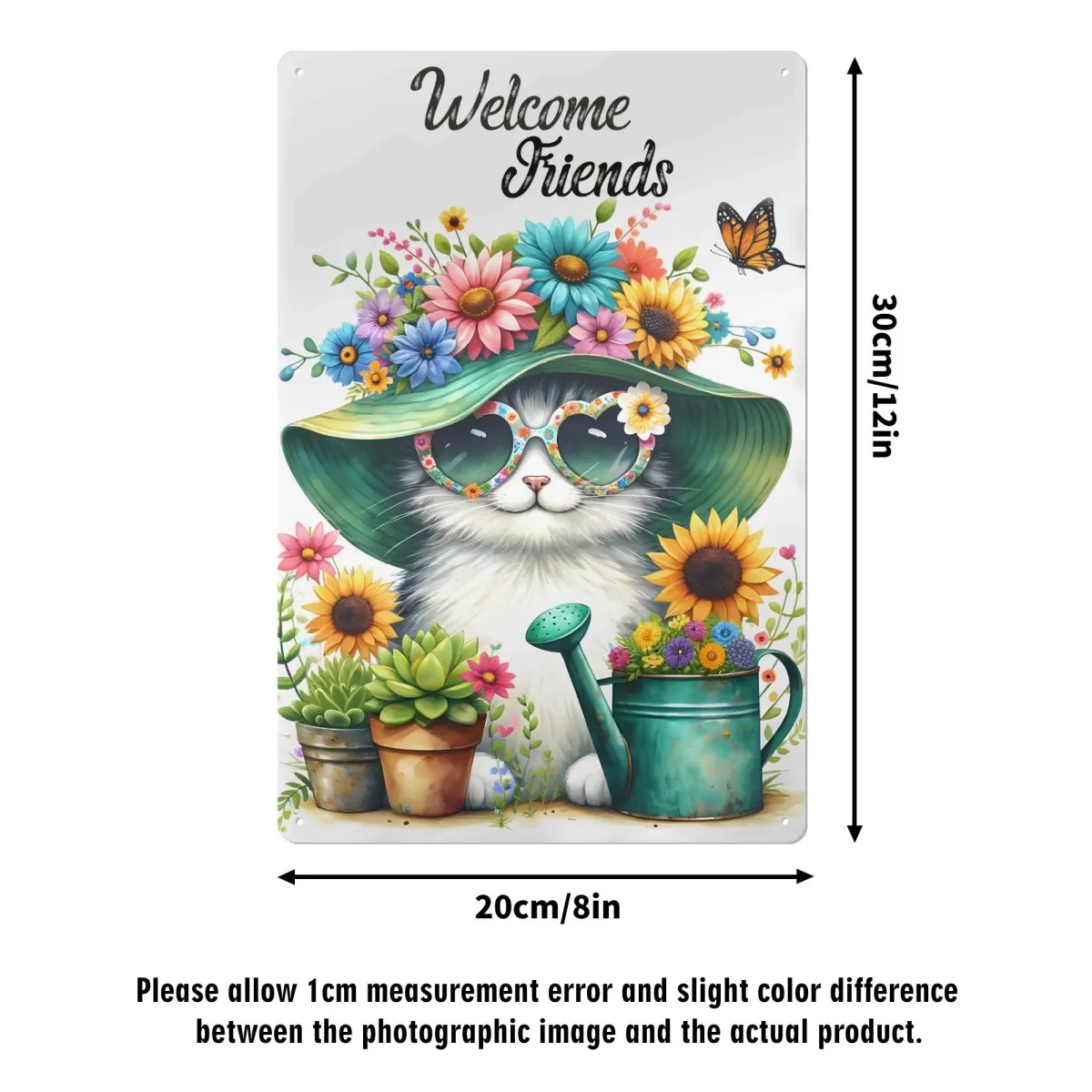 Verwelkom uw gasten met een warm metalen bord "Welcome Friends"! Het schattige design met een schattige kat midden in een bloeiende tuin geeft je entree, tuin of balkon een warme en uitnodigende sfeer. Perfect voor kattenliefhebbers en iedereen die zijn buitenruimte met een liefdevolle touch wil inrichten!
