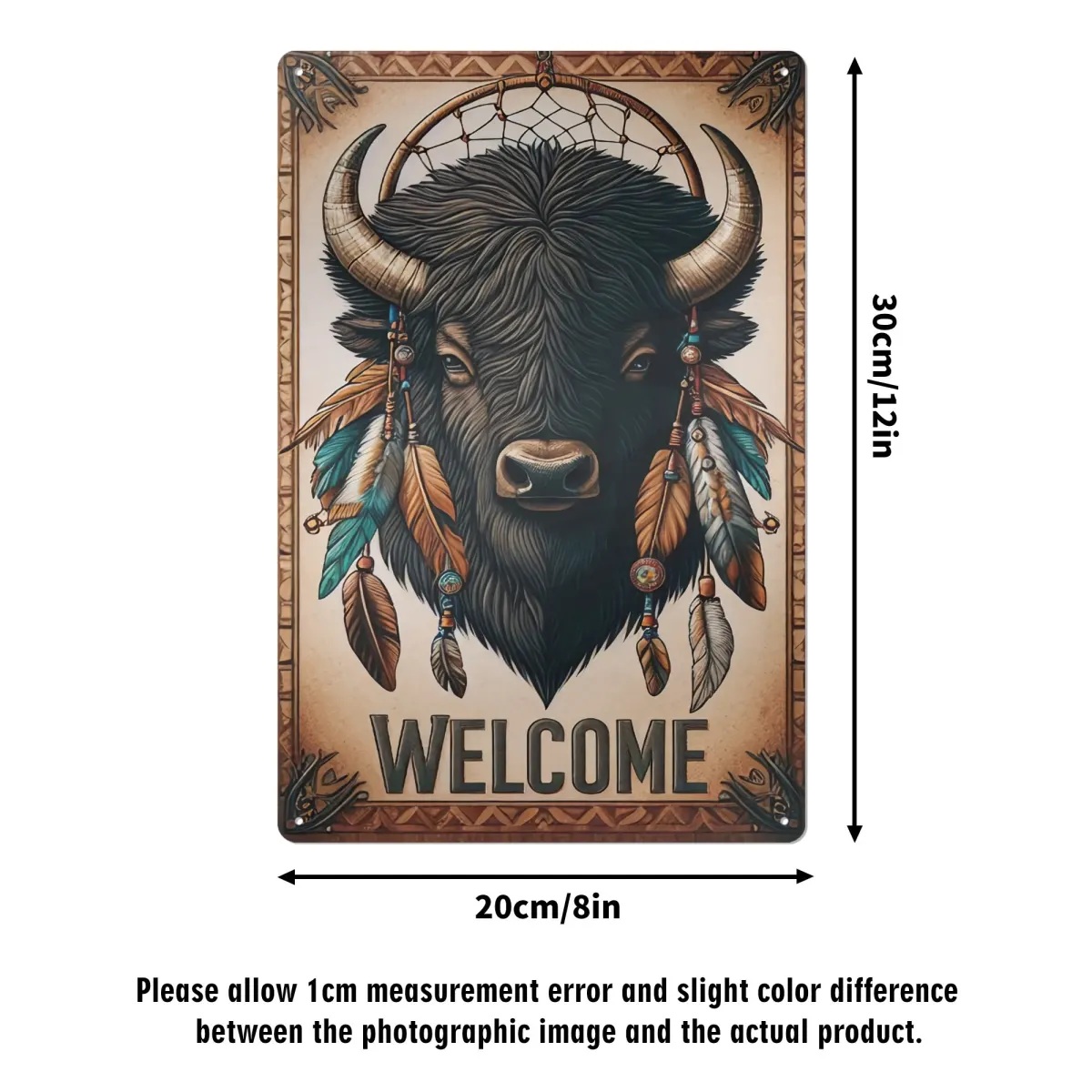 Dit Buffalo Western-tinnen bord is een stijlvolle toevoeging aan elke boerderij, landhuis en een geweldig cadeau-idee voor western- en dierenliefhebbers!