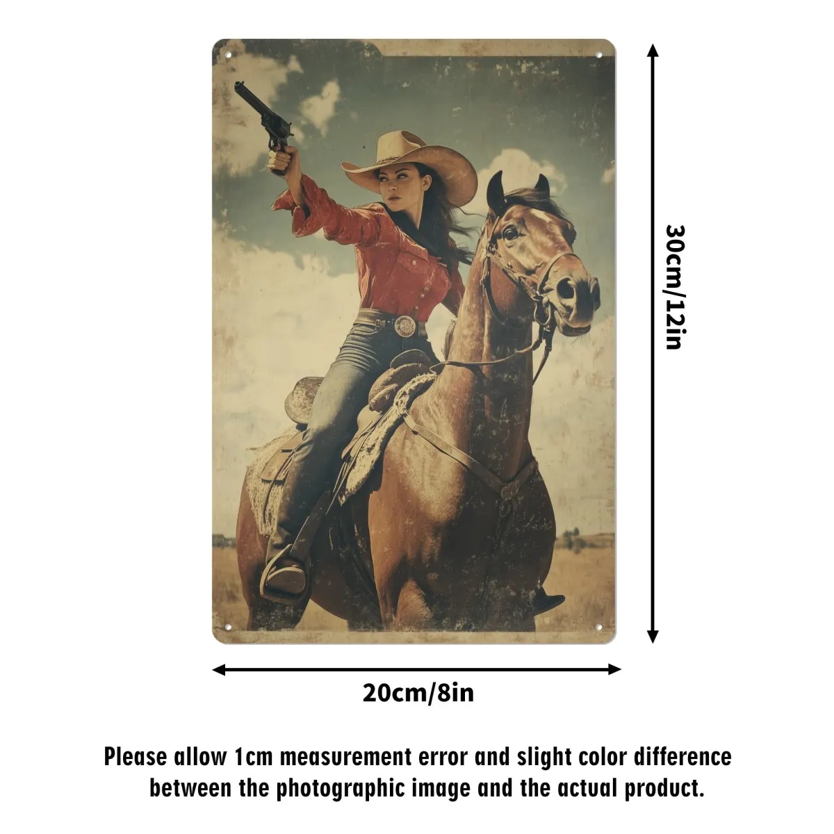 Als cadeau voor westernfans of als stijlvol decoratief hoogtepunt voor je huis: dit metalen western-cowgirl-bord brengt de flair van cowboys, kampvuren en ranchavonturen rechtstreeks aan je muur!