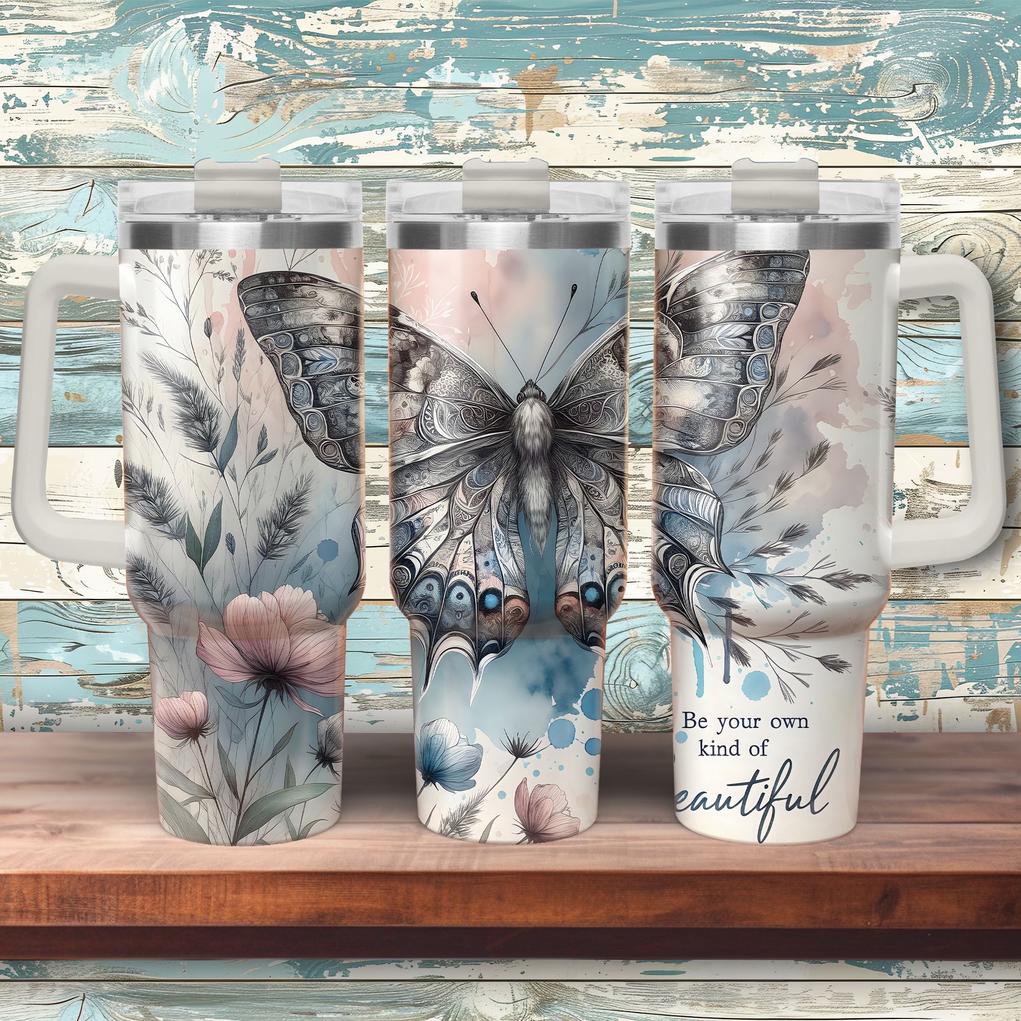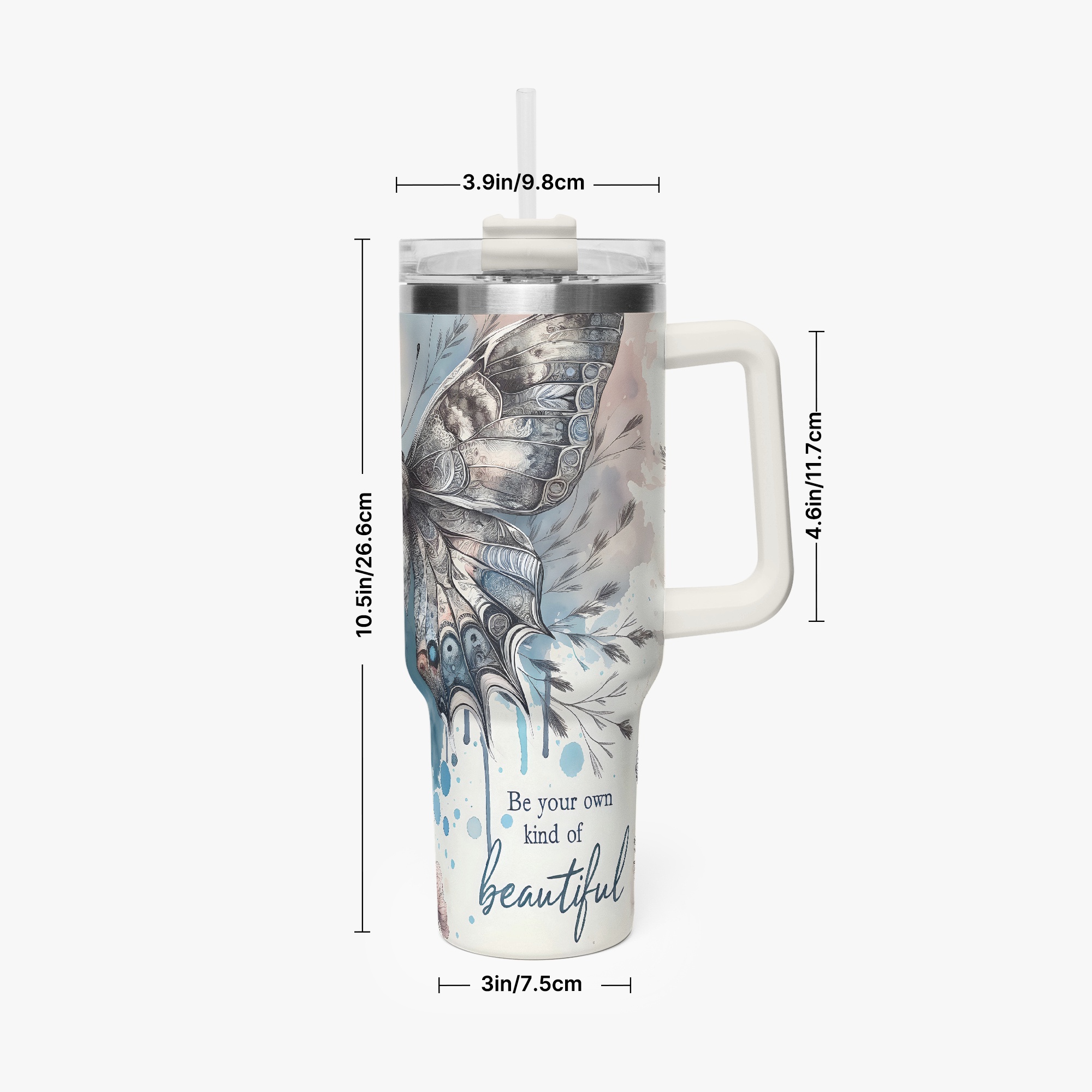 40oz thermische mok met handvat – ToGo – Bohemian Butterfly “Be Your Own Kind Of Beautiful”
