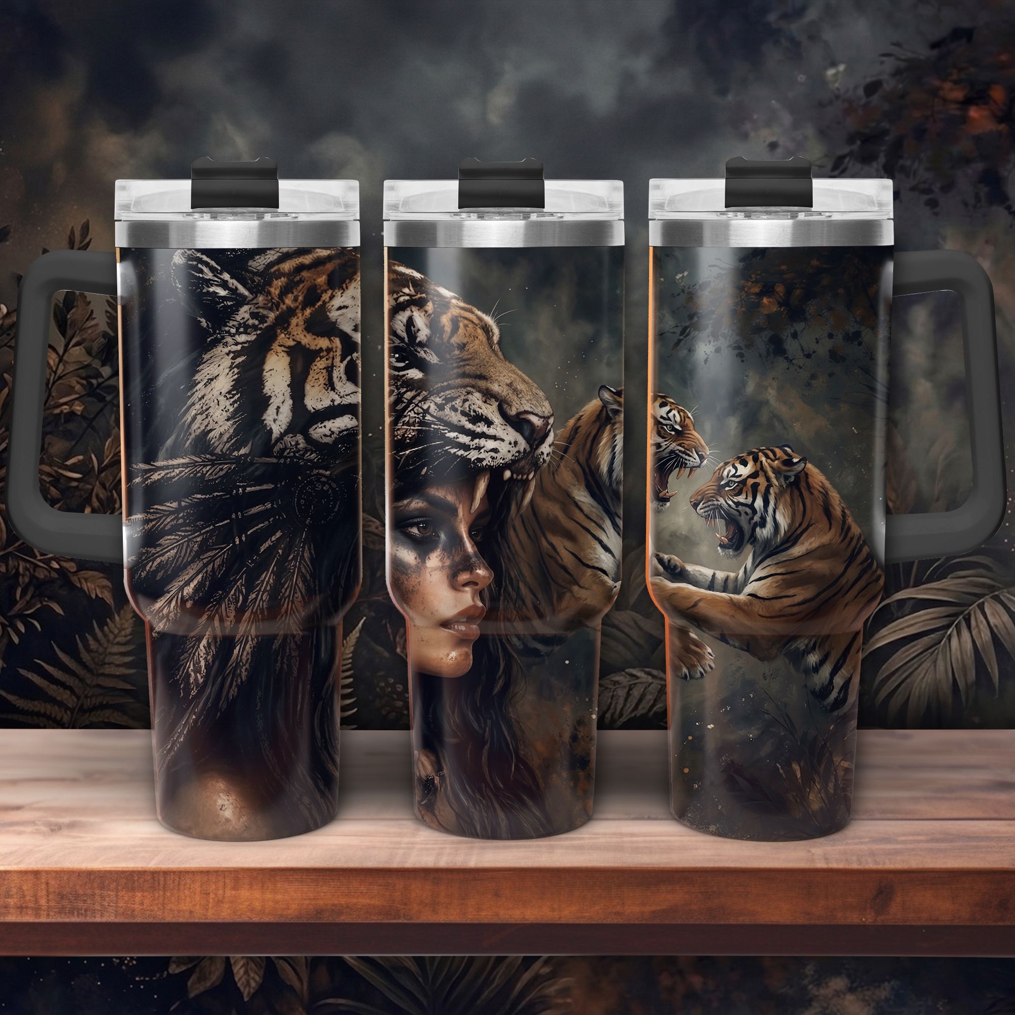 Drinkbeker met handvat - ToGo - Krachtig ontwerp met krijgertijger