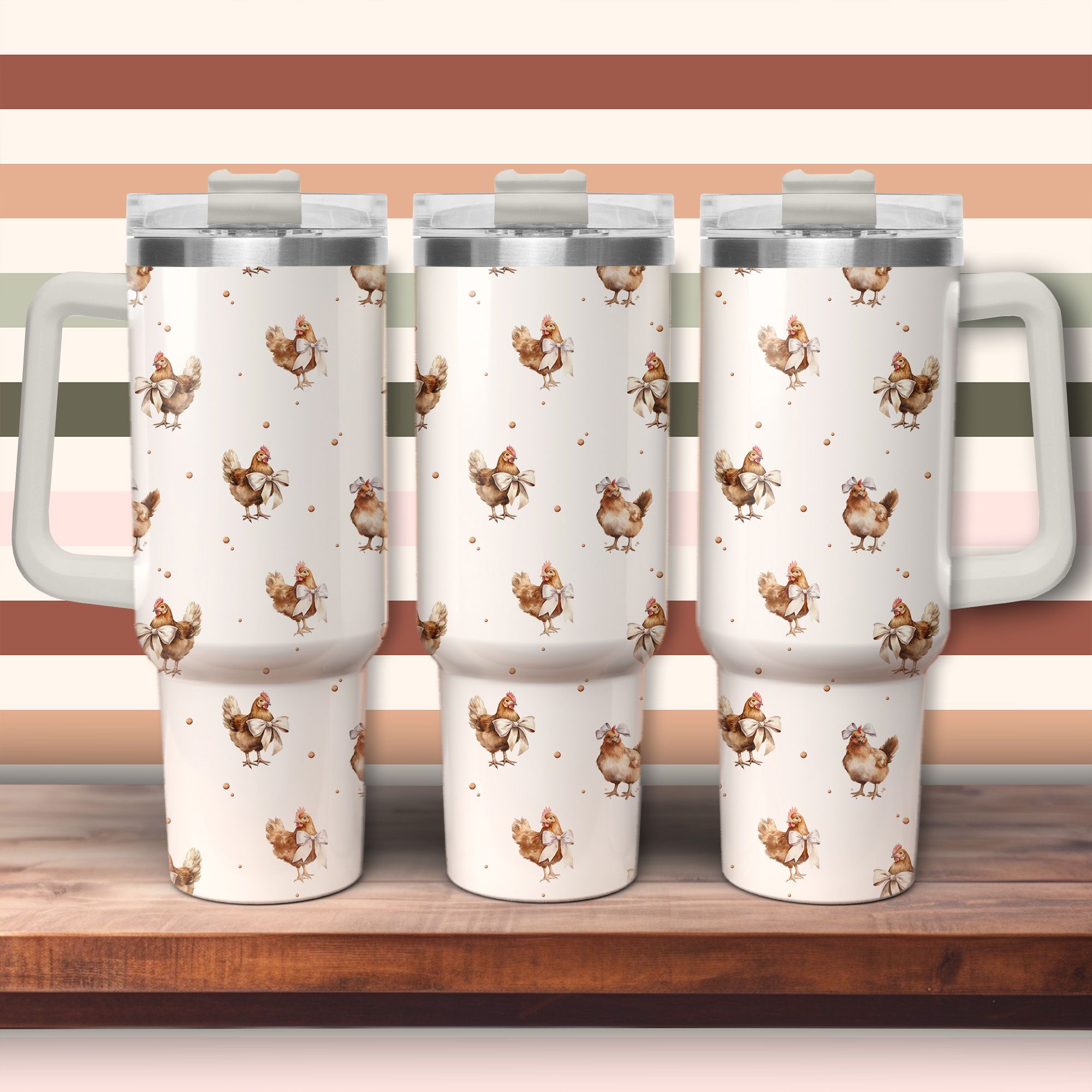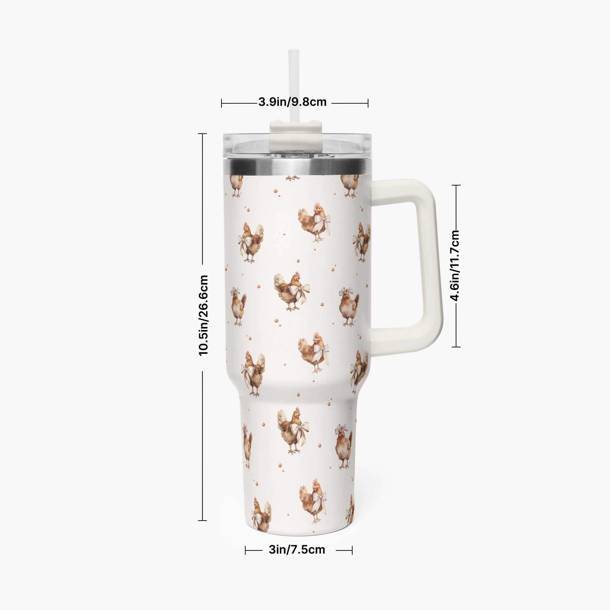 Met zijn liefdevolle kippenpatroon doet hij denken aan gezellige uurtjes op het platteland, frisse lucht, ochtendzon en het rustige gekakel in de tuin. Het is niet zomaar een mok, het is een klein stukje thuis voor onderweg.