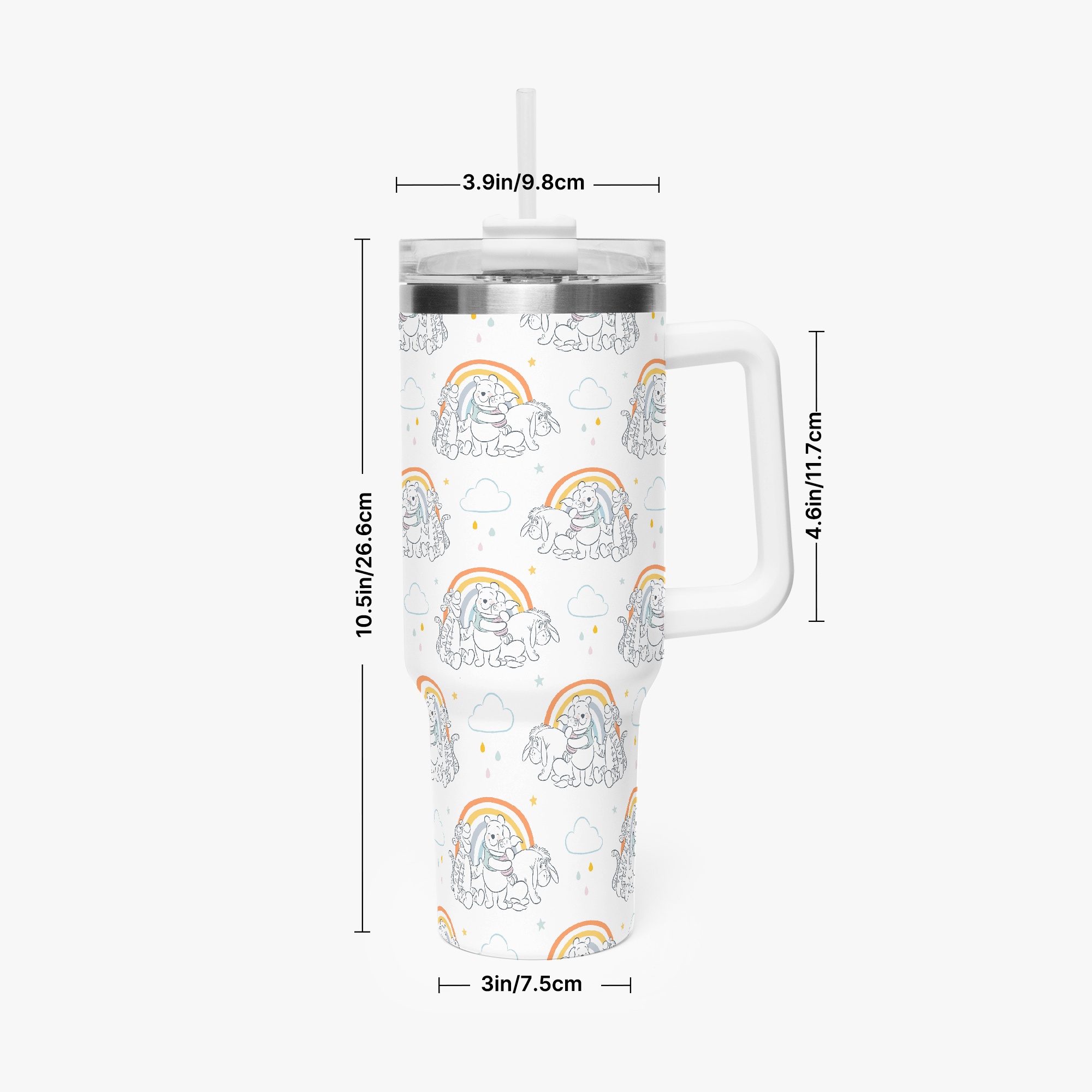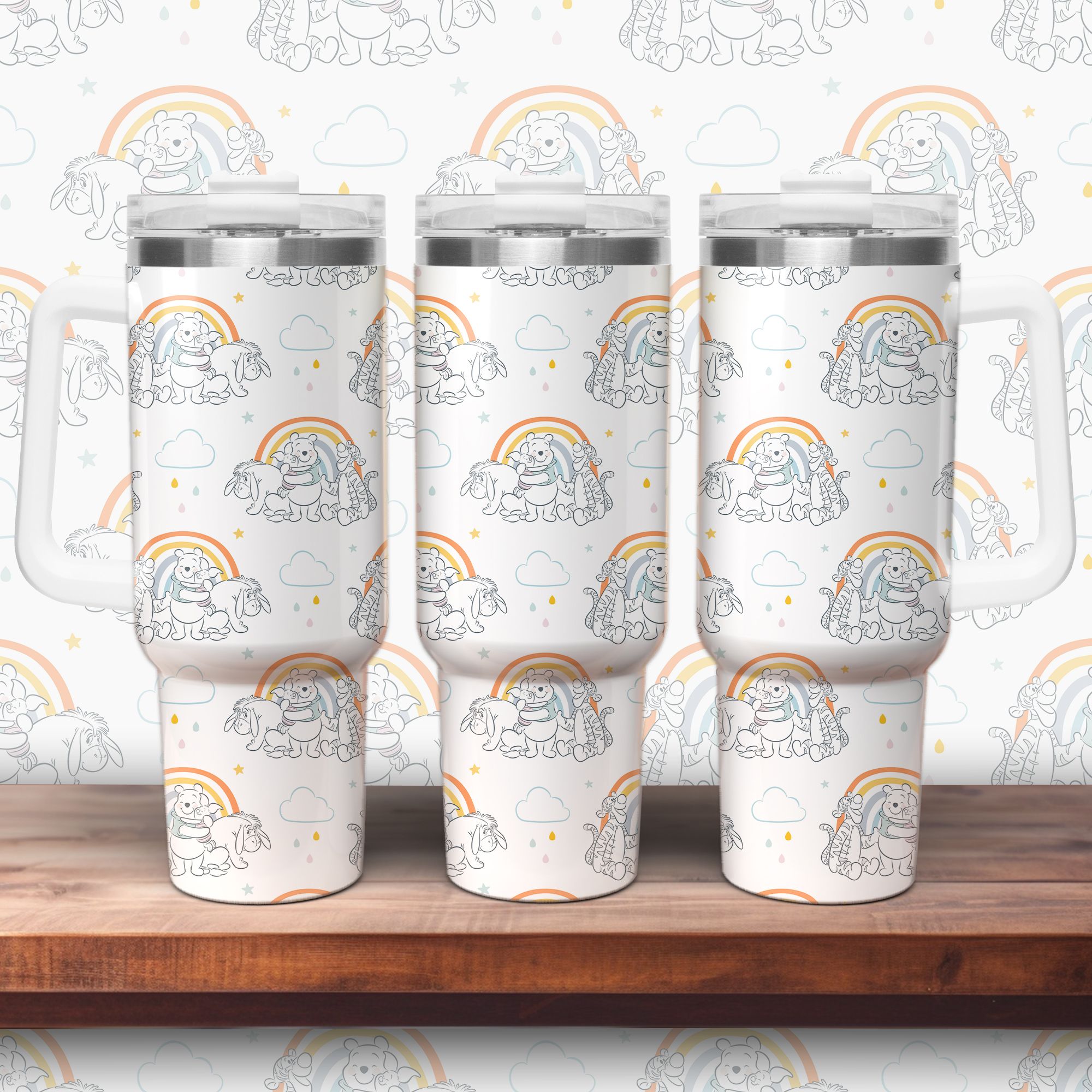 Maak je dagelijkse leven een beetje gelukkiger – met de “Rainbow Dreams” thermosbeker! Het schattige ontwerp met Winnie de Poeh, Teigetje en Iejoor onder regenbogen bezorgt je al bij de eerste slok een glimlach.