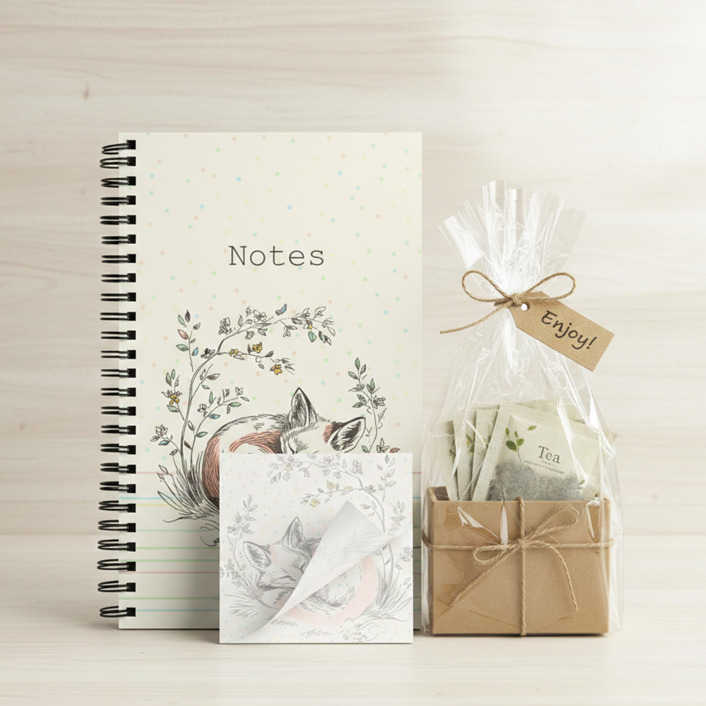 Dieses liebevoll gestaltete Spiral-Notizbuch mit ruhendem Fuchs in einem zarten Blumenkranz strahlt Wärme, Ruhe und Natürlichkeit aus. Das harmonische Design im sanften Naturstil macht es zu einem stilvollen Begleiter für Alltag, Schule oder Büro – perfekt für Tierliebhaber und Fans von minimalistischer, ästhetischer Schreibwaren.