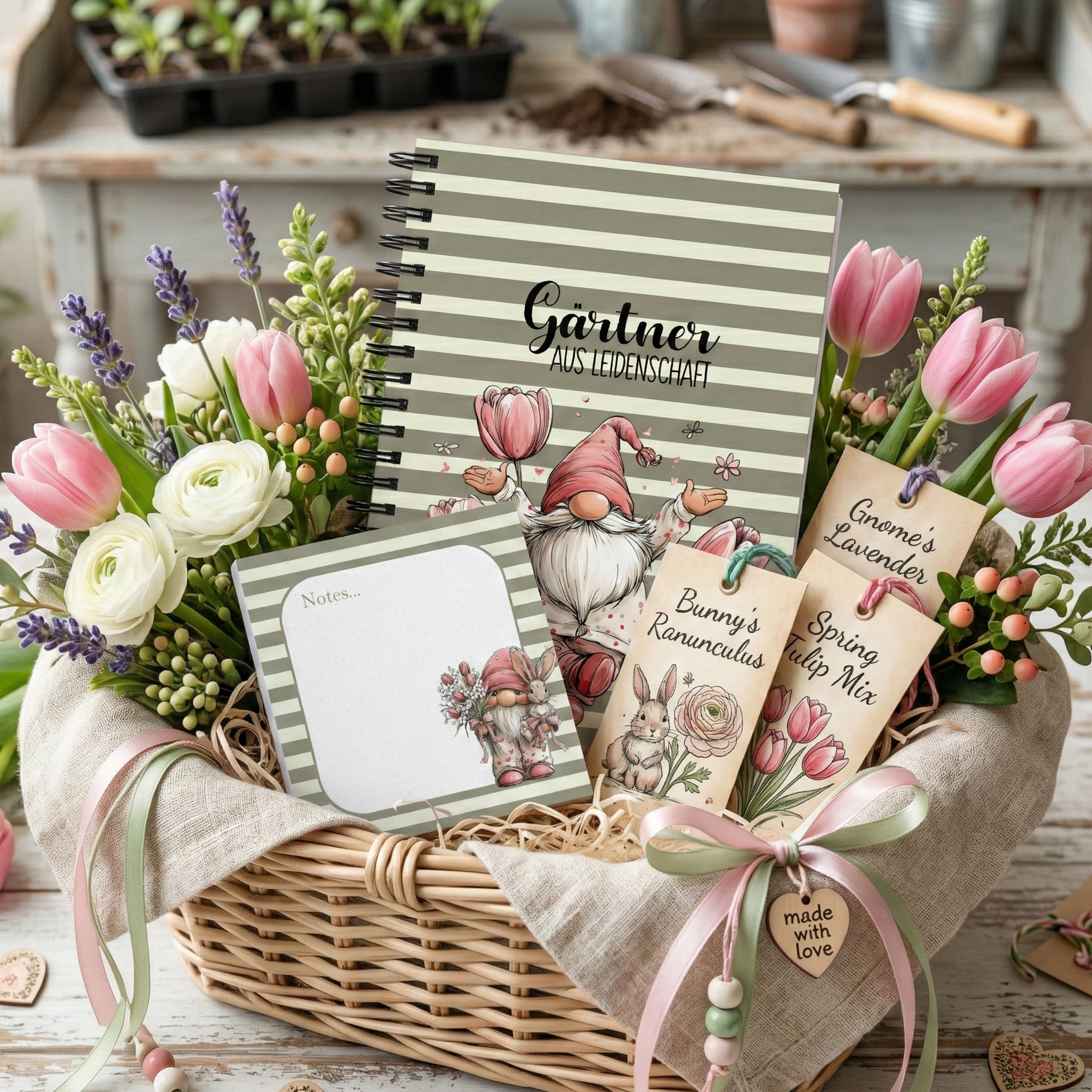 Dieses liebevoll gestaltete Spiral-Notizbuch für Gartenliebhaber begeistert mit einem charmanten Gärtner-Motiv zwischen wunderschönen Blumen und dem Schriftzug „Gärtner aus Leidenschaft“. Ein echtes Highlight für alle, die Gartenarbeit, Natur und Blumen lieben.