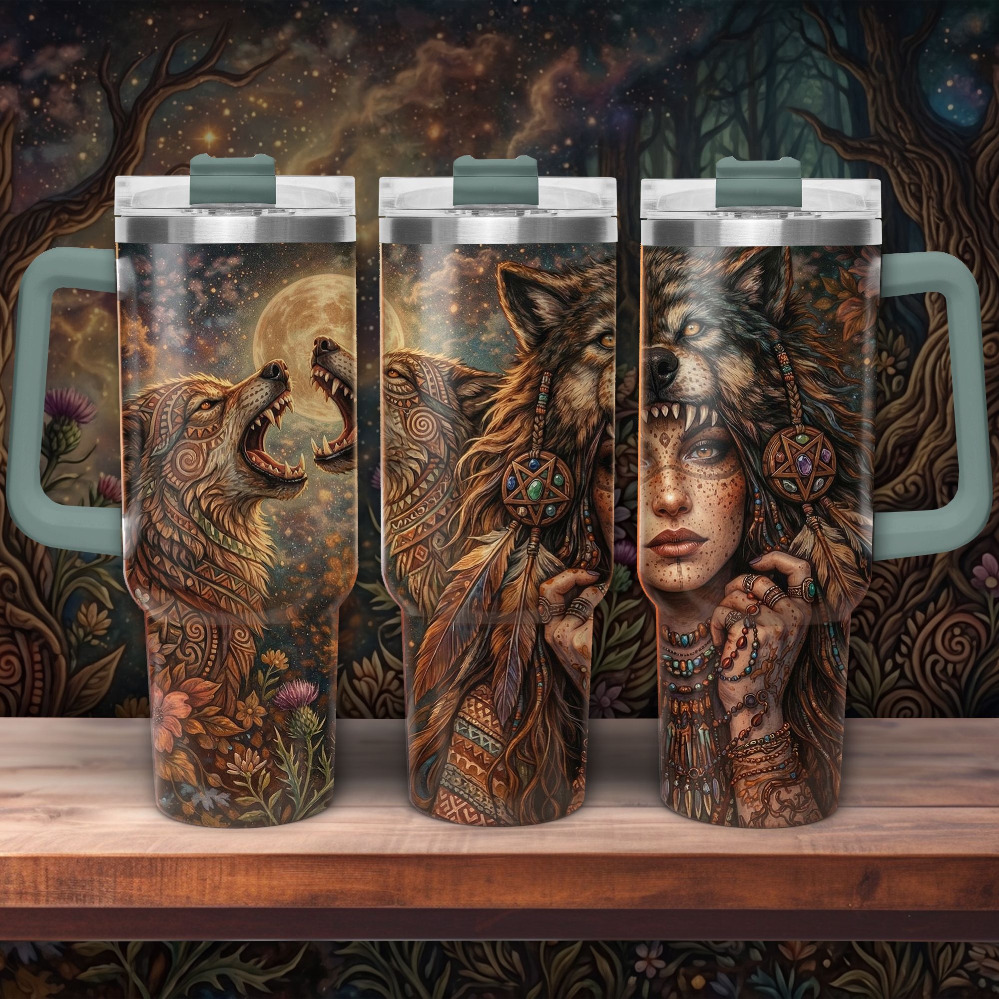This extraordinary travel mug with its wolf and warrior design is more than just a mug â it's an expression of freedom, strength, and a deep connection to nature.